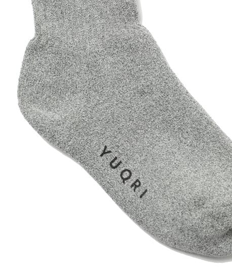締め付けを抑えた口ゴムは、着用跡を気にせず一日中快適。希少な編機で実現したパイル編みが、足全体に柔らかなクッション性を生み出します。