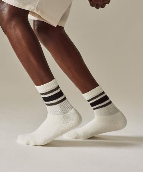 肌あたりの良いドライタッチのループヤーンを使用したラインソックスです。
