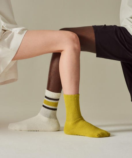 '- YUQRI - puff pile short crew line yellow / men