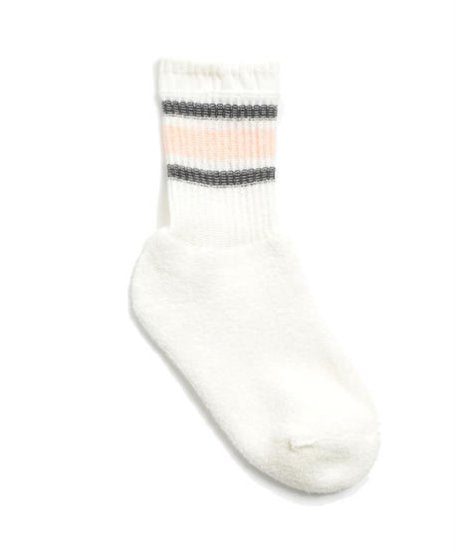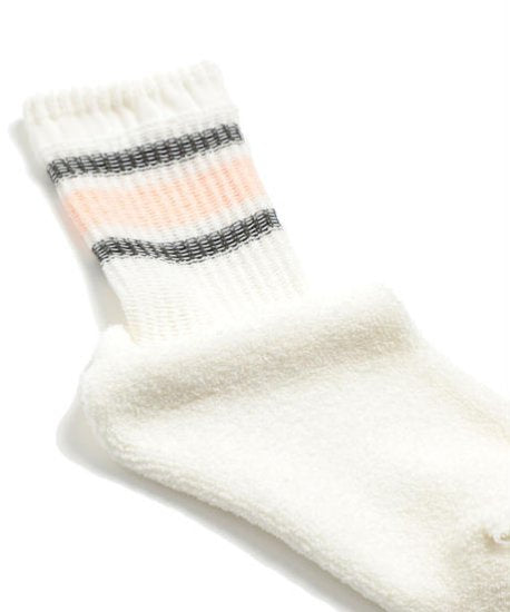 ふんわりとしたドライタッチのループヤーンが、肌に寄り添う快適な履き心地を叶えます。ピンクのラインが足元に軽やかなアクセントを加え、日常に豊かな彩りを添える一足です。
