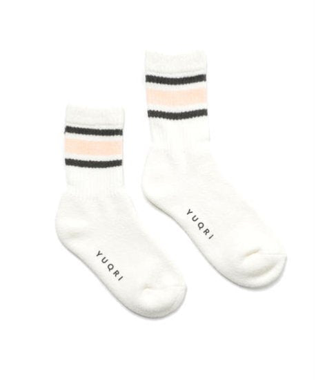 YUQRIソックスは、肌あたりの良いドライタッチのループヤーンと希少な日本製編み機によるパイル編みで、極上の履き心地を実現しました。