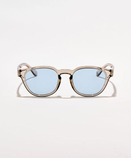 どんな装いにも洗練されたムードを添える、ウエリントン型デザイン。軽やかなクリアグレーのフレームと爽やかなブルーレンズが、顔周りに明るい印象を与えます。