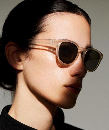 肌なじみの良いクリア素材が、顔色をパッと明るく見せ、知的でこなれた印象を与えます。自然に溶け込みながら、確かな存在感を放ちます。